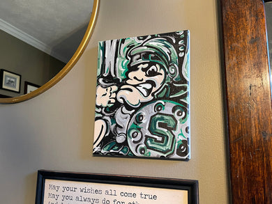 Michigan State University 8" x 10" Vintage Sparty Wrapped Canvas Print by Justin Patten