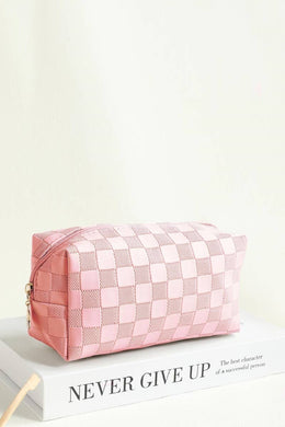 Pink Checkered Cosmetic Makeup Travel Case