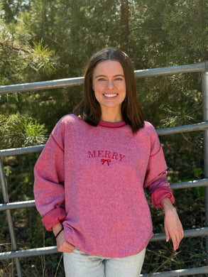 Merry Embroidered Inside-Out Sweatshirt