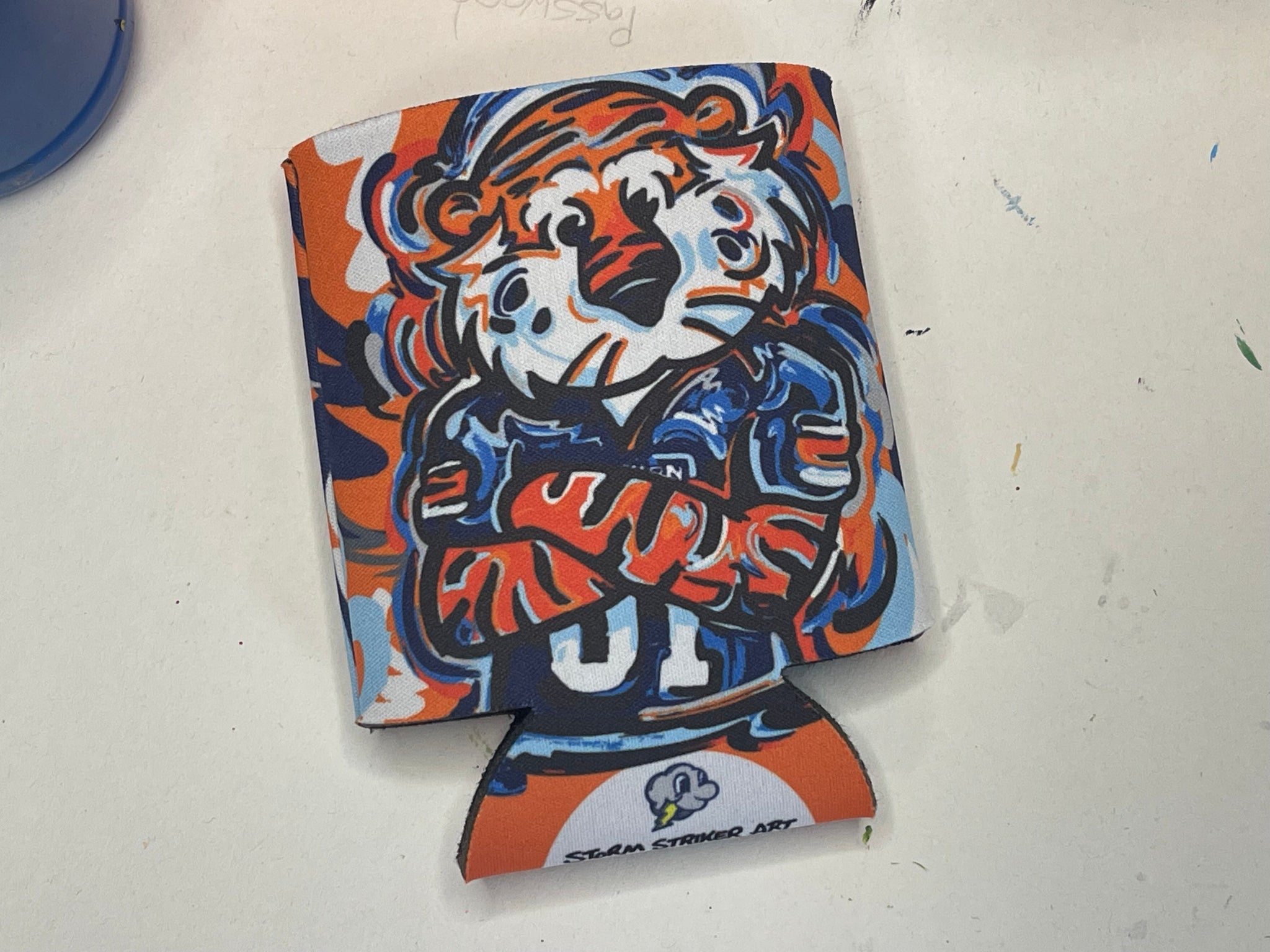 Justin Patten brings his brushstrokes to this Auburn Football drink sleeve.