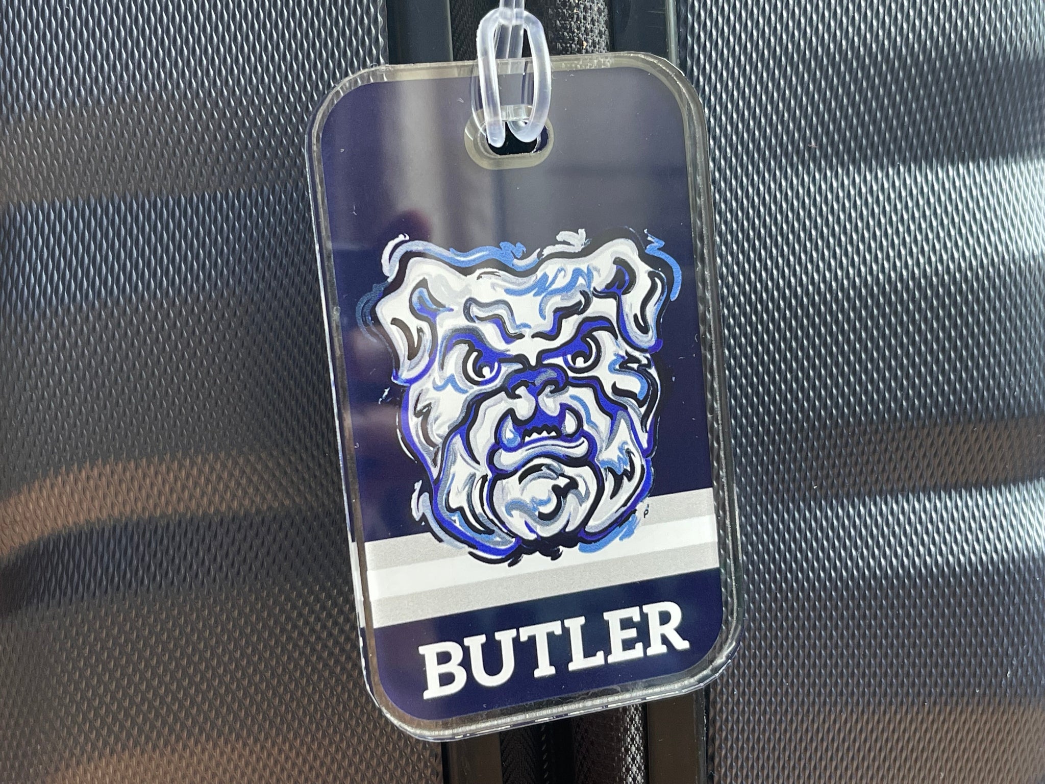 Justin Patten brings his unique, artistic style to The Butler Bulldog logo with this acrylic luggage/bag tag.