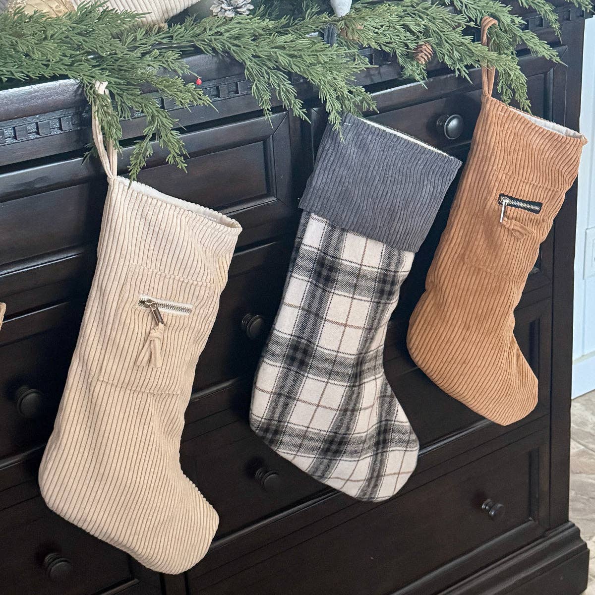 Tan Cord Zipper Christmas Stocking