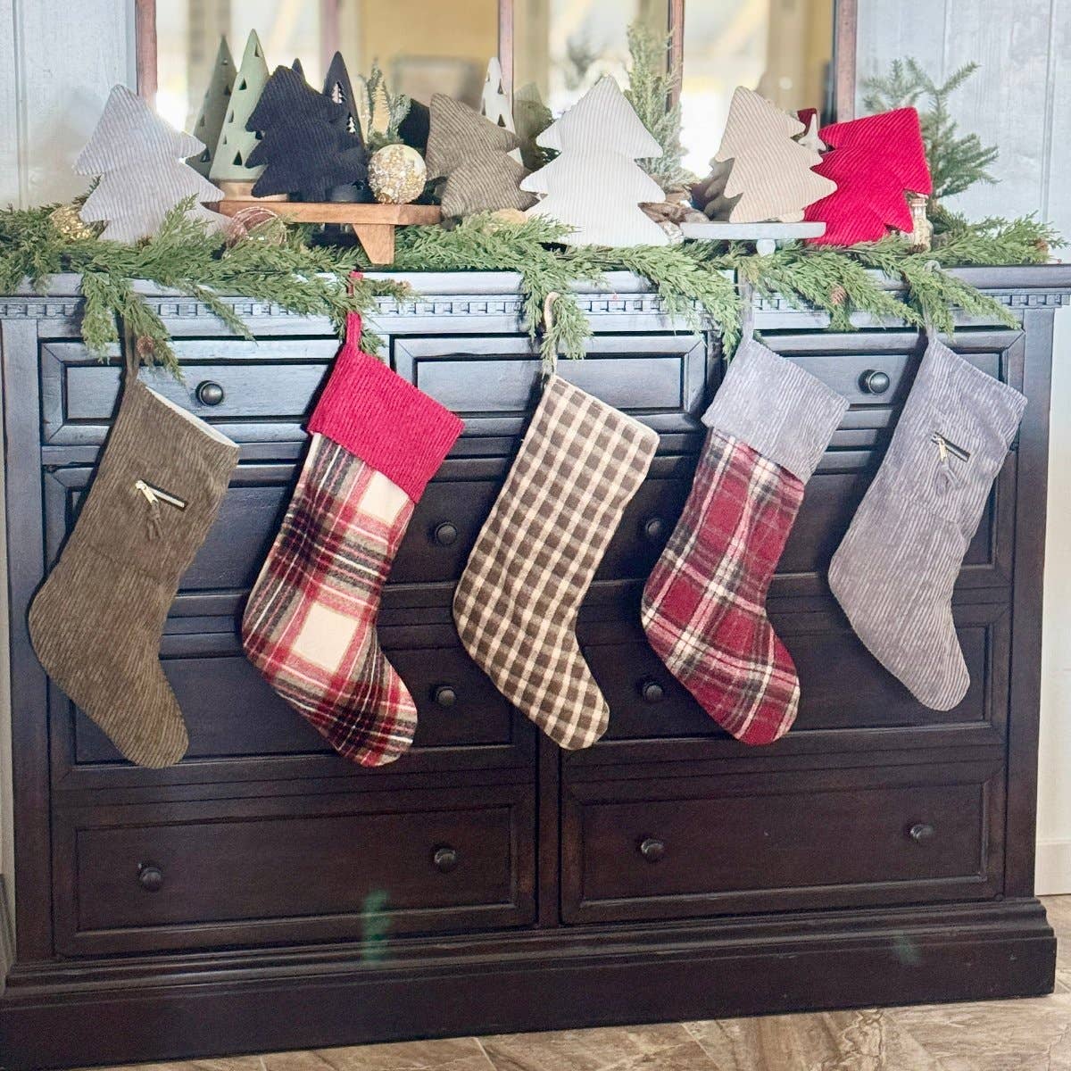 Measurements: 10 1/2" W x 16 1/2" T Corduroy Stocking with Outside Zipper Pocket