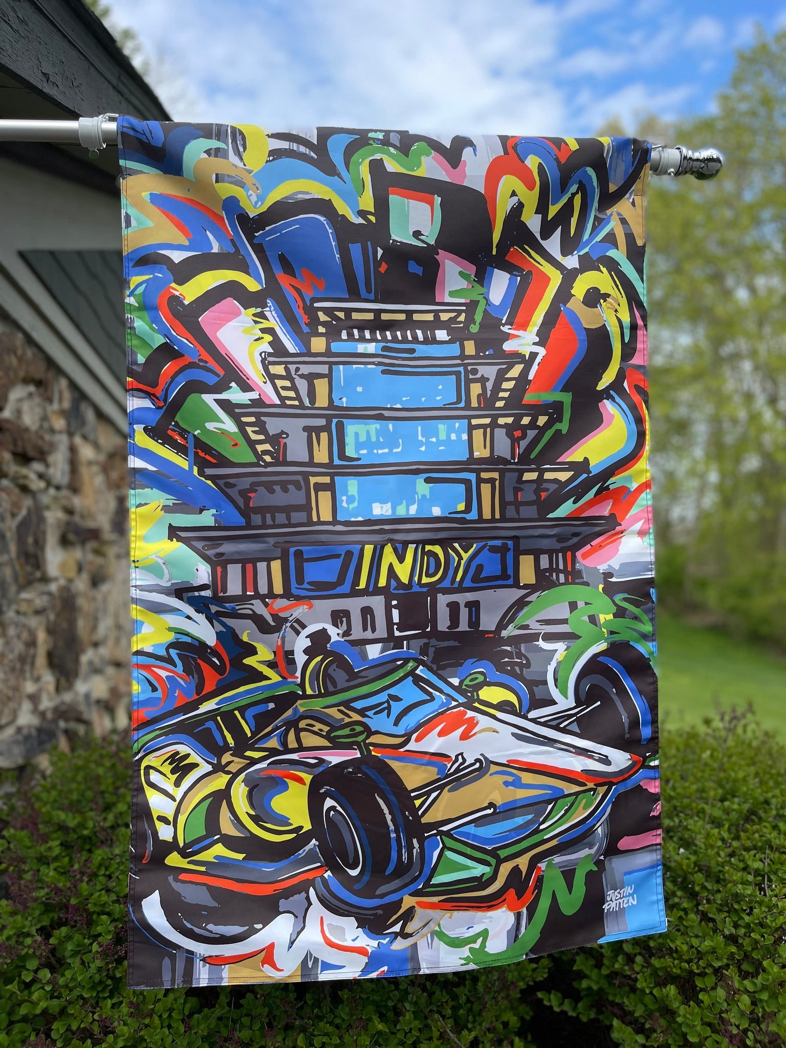 Justin Patten brings his unique, artistic style to the world of racing with this exclusive IMS licensed flag.