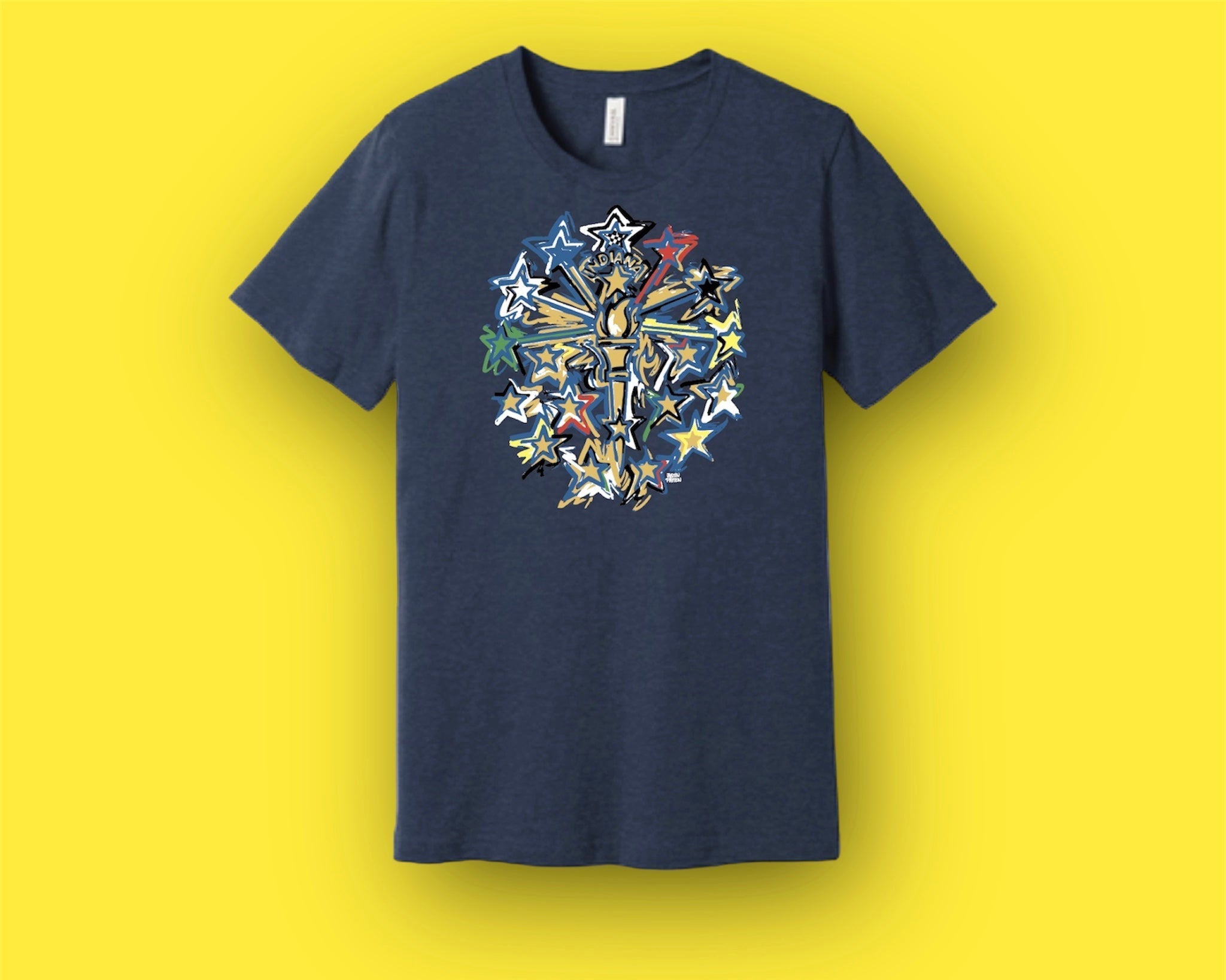 Justin Patten brings his unique, artistic style to the world of racing with this exclusive Indiana flag apparel. You will love the feel of this shirt from day one. This design uses a new take on the Indiana Flag to create a timeless new energy.