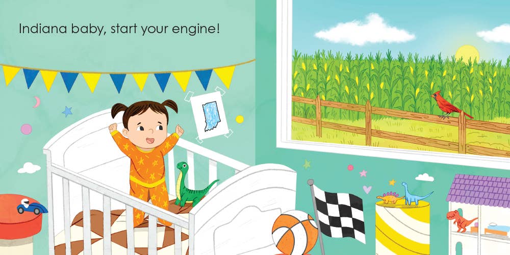 Here come the Indiana babies, ready to give you a tour of their home state in this appealing board book!