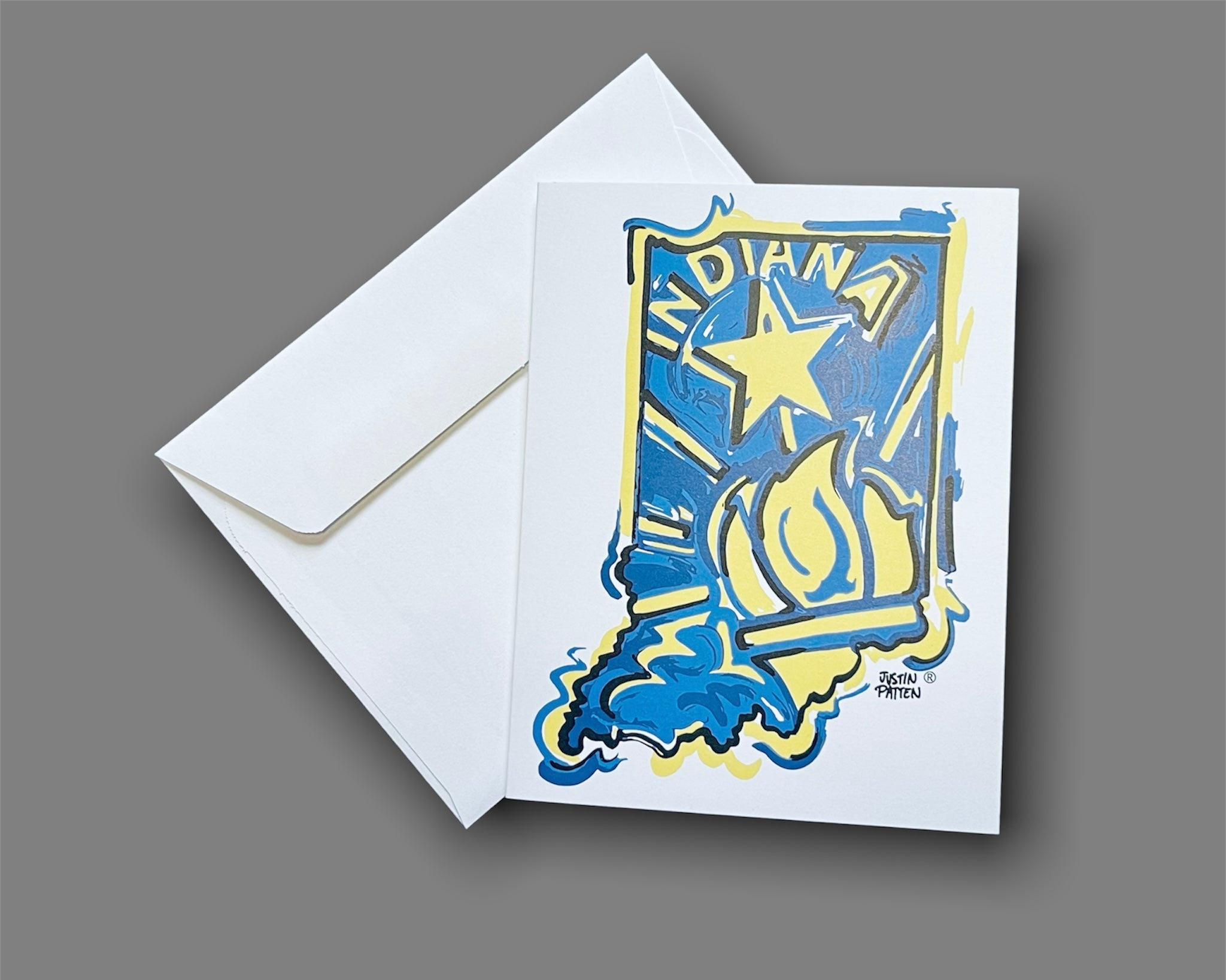 This is a beautifully created note card set created by artist Justin Patten, and is being sold by the artist. The bold colors of these cards catch the energy of Indiana.