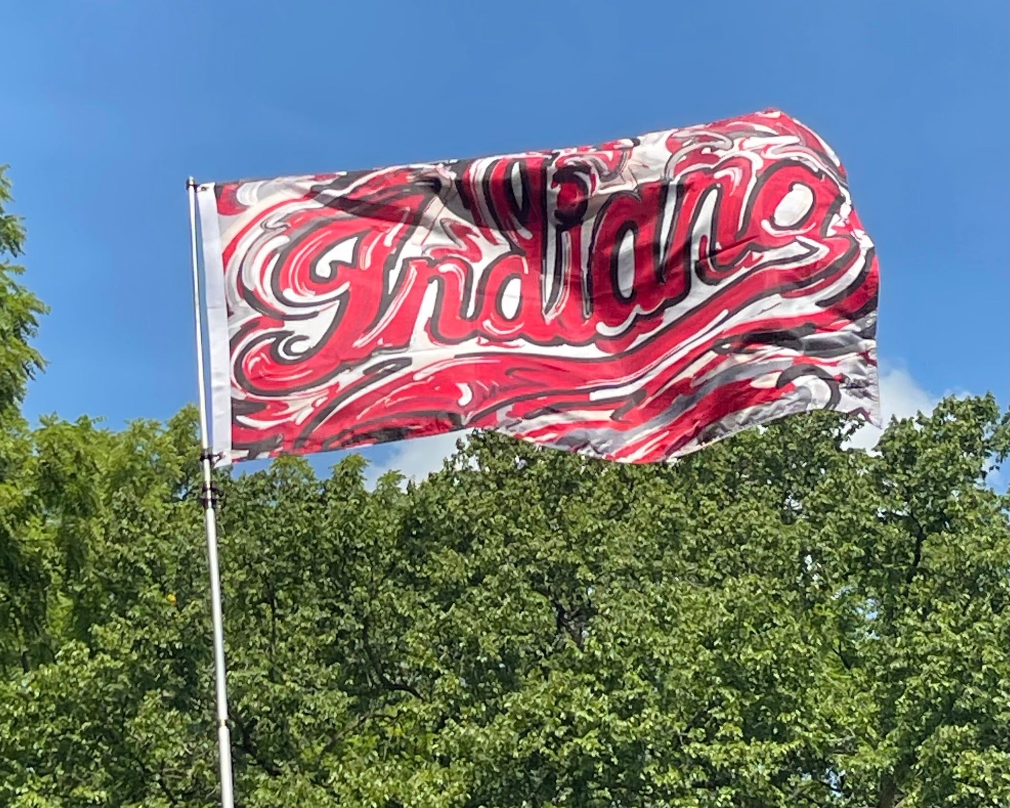 Justin Patten brings his unique, artistic style to the Indiana University Script logo with this Flagpole Flag. The flag has 2 grommets to make it ready for a flagpole. This is a two sided flag.