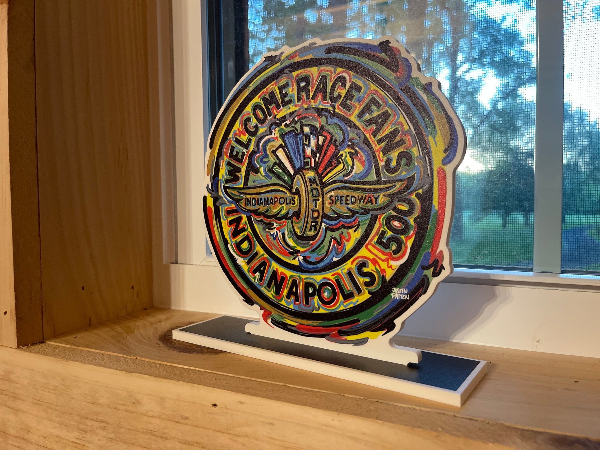 Justin Patten brings his unique, artistic style to the world of racing with this exclusive IMS standiee.